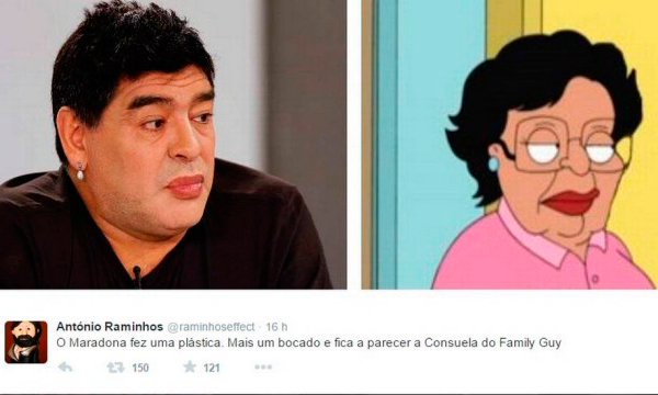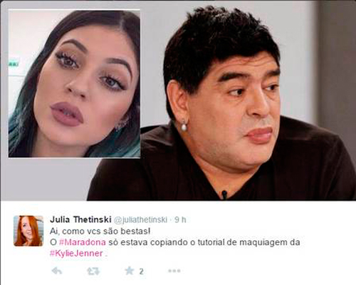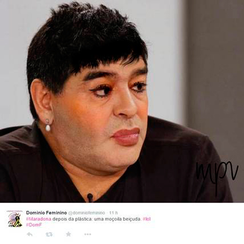 O Ex-jogador argentino Diego Maradona virou piada na internet após aparecer com um novo visual. Um dos maiores jogadores da Seleção Argentina, Maradona apareceu com o rosto rejuvenescido em um programa de TV. Aos 54 anos El Pibe realizou uma cirurgia conhecida como lifting facial para a retirar as “bolsas” que ficam localizadas abaixo dos olhos e deixar a pele mais suave.