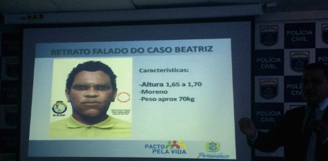 Nesta segunda-feira (22), a Polícia Civil apresentou o retrato falado do suspeito de Beatriz Angélica Mota, de apenas 7 anos. De acordo com o desenho, o homem seria moreno, com aproximadamente 70 quilos e medindo entre 1,65 e 1,70 metros de altura. Os detalhes estão sendo revelados pelo chefe do órgão, Antônio Barros, e o delegado especial à frente do caso, Marceone Ferreira Jacinto.