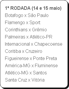 A CBF apresentou aos 20 clubes da Série A a tabela do Brasileirão de 2016. As datas e horários ainda não foram definidos. A primeira rodada acontecerá nos dias 14 e 15 de maio e tem como destaques os jogos Flamengo x Sport, Botafogo x São Paulo, Corinthians x Grêmio, um duelo entre dois participantes da Libertadores, Atlético-MG x Santos, com Robinho à frente de sua ex-equipe, e o confronto nordestino entre Santa Cruz e Vitória. A sétima rodada terá dois clássicos: Palmeiras x Corinthians e Atlético-MG x Cruzeiro.