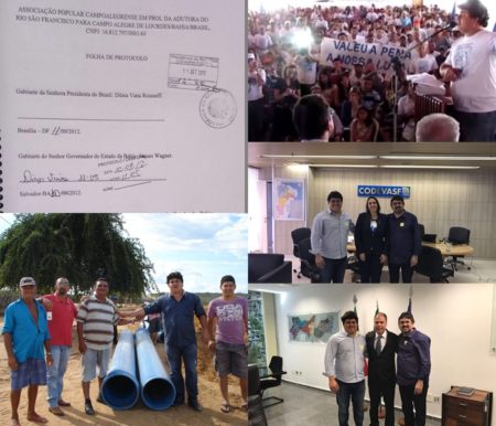Naquele ano, de deputados à presidente da República e dirigentes de órgãos federais receberam o documento e em 2013, o então Ministro Fernando Bezerra Coelho, atendendo a população de Campo Alegre e ao vereador de Petrolina, Pérsio Antunes (Campo Alegrense), autorizou a execução do projeto da adutora, conforme contrato 0.118.00/2013, no valor de 79,6 milhões, com data de início em 25/01/13 e término em 21/03/17. Em outubro de 2013, o governador da Bahia Jacques Wagner e o Presidente da Codevasf, lá em Campo Alegre, sob o sol de 40 graus, assinaram a ordem de serviço de execução da adutora.