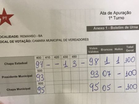 Em Remanso, compareceram 100 filiados ao PT que votaram neste domingo.