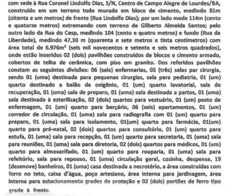 Por determinação judicial, está penhorado desde o dia 28 de março de 2017 o Hospital Nossa Senhora de Lourdes na cidade de Campo Alegre de Lourdes.