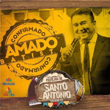 A Prefeitura Municipal de Pilão Arcado, através da Sec. Cultura, confirma a primeira atração inédita nos festejos do Padroeiro Santo Antônio, Amado Batista, com mais de 30 milhões de discos vendidos, 32 álbuns lançados em 40 anos de carreira.