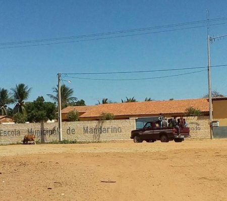 De acordo imagens enviadas, no povoado de Mandarino, distante da sede do município 105 km, o veículo que faz o transporte foi flagrado pegando crianças na escola. No veículo, crianças se misturam com adultos.