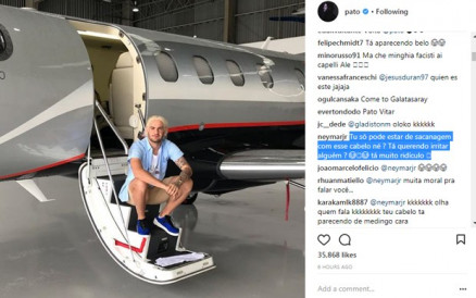 “Tu só pode estar de sacanagem com esse cabelo, né? Tá querendo irritar alguém? Tá muito ridículo”, escreveu o craque do Paris Saint-Germain nos comentários. Pato chegou a responder o comentário: “Para de graça”.