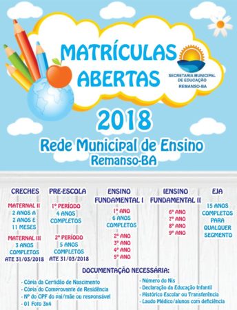 As matrículas para a rede municipal de ensino da cidade de Remanso, já estão sendo realizadas.
