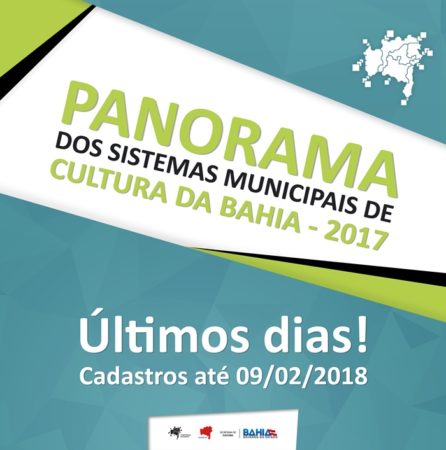 Para reunir informações acerca da institucionalidade da cultura nos municípios baianos, com conteúdo que realiza comparativos históricos e registra a memória da criação e implementação dos Sistemas Municipais de Cultura da Bahia, a Secretaria de Cultura do Estado da Bahia (SecultBA) convoca todos os municípios baianos a participarem do Panorama dos Sistemas Municipais de Cultura da Bahia 2017.