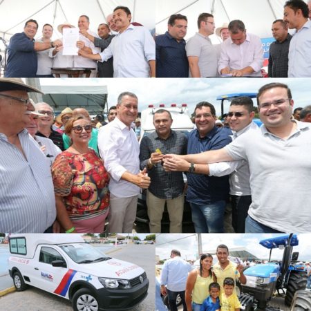 Ainda em Pilão Arcado, Rui entregou 1.307 cisternas, uma ambulância, um trator com implementos agrícolas para o município e 1.280 certificados do Cadastro Ambiental Rural (CAR), documento que possibilita o acesso de pequenos produtores a insumos capazes de qualificar o plantio e colheita, bem como a criação de animais.