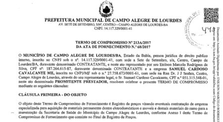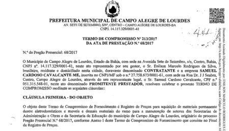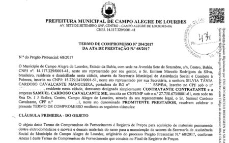 A empresa Dona do Lar realizou contratos com a prefeitura de Campo Alegre de Lourdes desde setembro de 2017. Os contratos foram firmados para o fornecimento de materiais de utensílios de cozinha, e também para a aquisição de materiais permanente, dentre eletrodomésticos, móveis e demais materiais do ramo para a manutenção da Secretaria de Assistência Social, Secretaria de Administração e Obras, Secretaria de Educação, e Secretaria de Saúde.