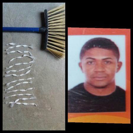 Com o apoio da Policia Civil foi feito uma busca na residência da pessoa de Fabio Luiz de Souza, (conhecido por Pastor Júnior), onde foi encontrado 37 papelotes de uma substância (cocaína), dentro de um cabo de vassoura.