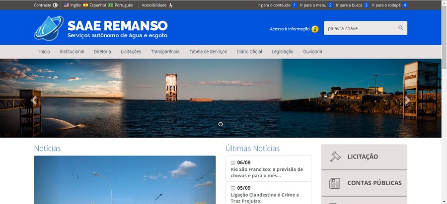 O site do SAAE, que pode ser acessado pelo endereço eletrônico http://www.saaeremanso.ba.gov.br, levará muita informação relevante à comunidade, como dicas para o uso sustentável da água e preservação do meio ambiente, mas o carro chefe do novo veículo de comunicação é o: http://www.saaeremanso.ba.gov.br/transparencia. Pela internet, os clientes podem informar falta de água, vazamentos e fazer sugestões e reclamações e, em breve, poderão emitir 2ª via de conta, consultar débitos e visualizar o histórico virtualmente. “O site ficou bonito e fácil de navegar. Estamos disponibilizando serviços que antes só podiam ser solicitados no setor de atendimento. Nossa intenção é oferecer mais um canal de dialogo com a população possibilitando que o cidadão de Remanso possa relatar uma situação ou conseguir uma informação sem precisar ir até a sede ou telefonar.