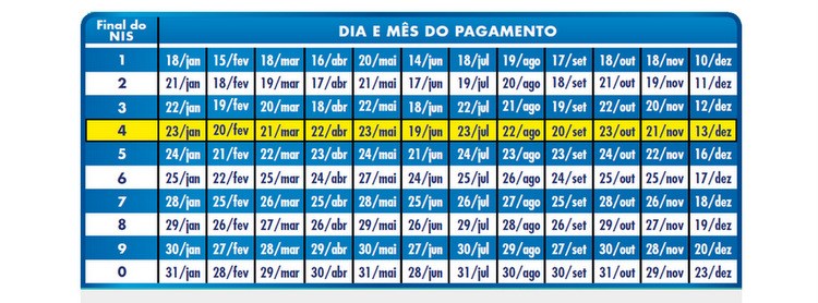 Beneficiários do Programa Bolsa Família podem consultar as datas de 2019 em que o pagamento estará disponível para saque. Para saber o dia em que o valor será creditado, a família cadastrada no programa deve consultar o último dígito do Número de Identificação Social (NIS) impresso no cartão magnético vinculado à sua conta bancária do titular.
