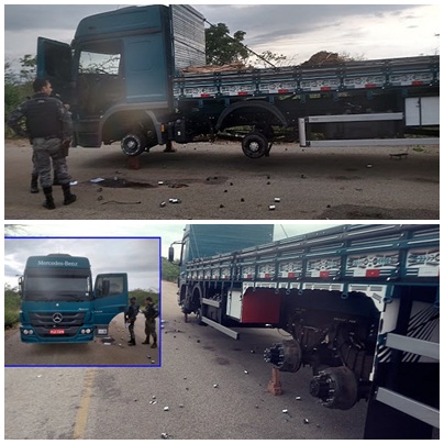 Mais um sequestro seguido de roubo na cidade de Jacobina do Piauí. A Força Tática de Paulistana recebeu a informação nesta sexta-feira (30/11) de que havia no acesso à barragem de Patos do Piauí, nas proximidades da BR-407, um caminhão modelo MB Atego 2426 azul, PIZ-1379 Teresina-PI, do qual haviam sido retiradas todas as rodas do veículo.