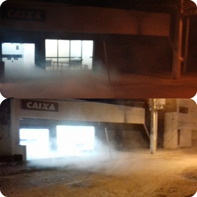 Imediatamente a nossa redação se deslocou para a agência bancária, onde tivemos a informação de um bancário do local, que a fumaça se trata de um dispositivo de segurança.