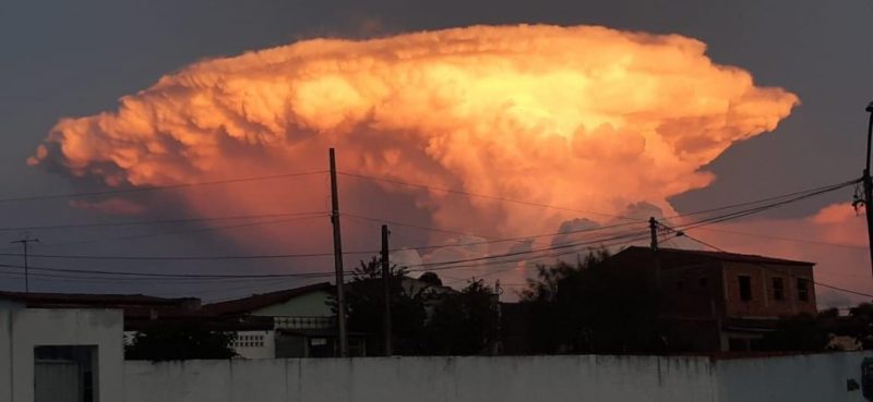 Já a coloração da nuvem seria provocada pela incidência da luz solar. “A curiosidade nas imagens é a coloração da nuvem, que se dá devido ao ângulo do sol se pondo em relação a nuvem, com os raios de sol e iluminando de baixo para cima, nos fornecendo mais um espetáculo da natureza”, finalizou.