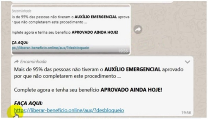 O desbloqueio e aprovação imediata do auxílio emergencial é falsa porque somente a Caixa Econômica Federal e a Dataprev podem fazer a avaliação, aprovação e desbloqueio dos cadastros das pessoas que tem direito ao benefício do auxílio emergencial. De acordo com a Polícia Federal, a maioria dos links que foi utilizado para aplicação dos golpes já foram bloqueados.