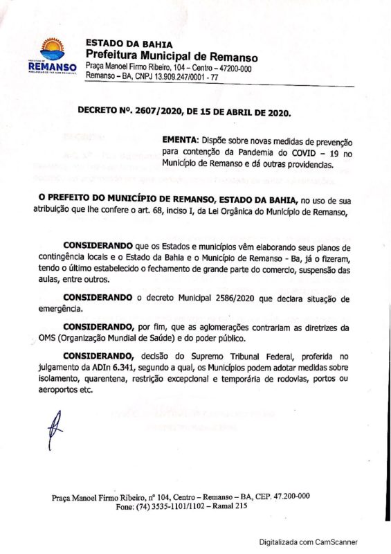 Para evitar disseminação do coronavírus (Covid-19), a Prefeitura de Remanso determinou o fechamento do Cais. A decisão foi tomada para o combate à Covid-19, e publicada em decreto na última quarta-feira (15).