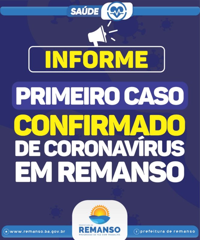 A secretaria municipal de Saúde de Remanso, confimou na noite deste domingo(03), o primeiro caso de infecção pelo novo coronavírus no município. Sua identidade não foi informada.