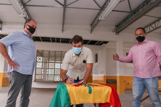 Uma creche de alto padrão com capacidade para acolher 188 crianças será construída na comunidade do Henrique Leite. A ordem de serviço para início das obras foi assinada pelo prefeito Miguel Coelho nesta segunda (15), em ato simbólico com o senador Fernando Bezerra. A unidade de ensino será erguida num prazo de oito meses com investimento de R$ 1,5 milhão.
