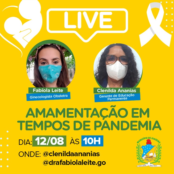 A live contou com a participação da gerente de Educação Permanente, Clenilda Ananias e da ginecologista obstetra e diretora médica do Hospital Materno Infantil de Juazeiro, Fabíola Leite. Na oportunidade foram esclarecidas dúvidas sobre o período de amamentação, mitos e verdades sobre o leite materno, alimentação saudável e cuidados de higiene durante a pandemia.