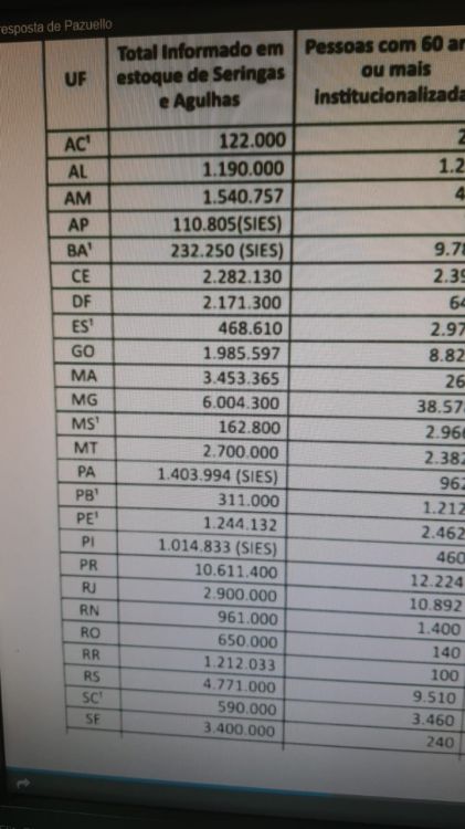 O Ministério da Saúde errou ao informar o Supremo Tribunal Federal (STF) sobre o quantitativo de seringas e agulhas em estoque nos estados brasileiros. O documento elaborado pelo Ministério e endereçado ao ministro Ricardo Lewandowski cita apenas 232 mil seringas na Bahia. No entanto, este quantitativo refere-se a seringa que vem da Índia com trava, 0,05 ml, acompanhando a vacina BCG.