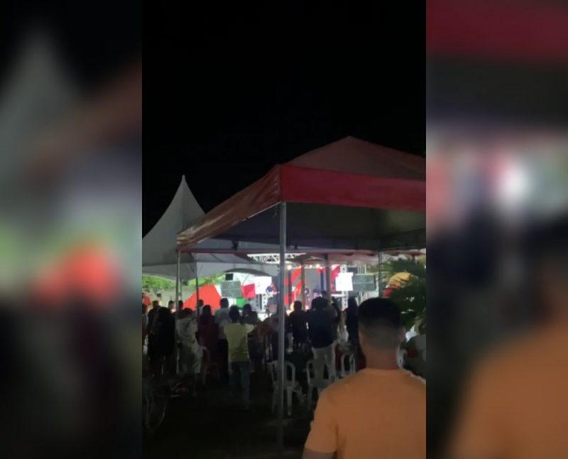 Nas redes sociais do prefeito, e de outros convidados, dentre eles o secretário de Saúde do município, é possível ver a reunião de pessoas em frente ao palco montado para a live. Nas imagens, a maioria das pessoas está sem máscara e desrespeitando a distância de 1,5 m entre elas.