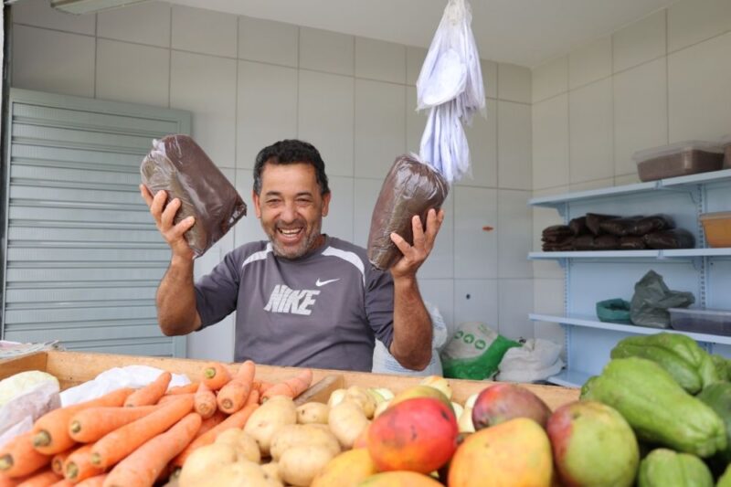 João Honorato, da comunidade de Pedrinhas, comercializa frutas e verduras no local. “Antes era muito sofrimento, a gente trabalhava debaixo dos pés de pau, carregando caixa para cima e para baixo. Hoje, é só abrir as portas e atender os clientes, que agora podem entrar no nosso box e até tomar um cafezinho”.