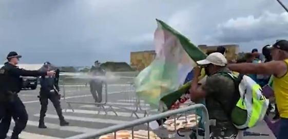 Policiais militares ainda tentaram conter os manifestantes com spray de pimenta, mas não tiveram sucesso e os grupos conseguiram avançar, inicialmente contra a área de contenção que cercava o Congresso.