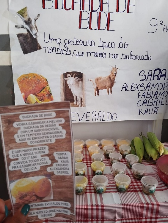 A aluna do 9°ano da Escola núcleo José Martins Ribeiro Sarah Emelly, conta que a sua turma levou para a feira a buchada de bode, prato típico da culinária da sua comunidade. “Foi bom ter esse novo conhecimento e mostrar um pouco das riquezas da nossa comunidade, conhecer melhor o desenvolvimento de cada aluno, participar de novas experiências, gostei muito de fazer parte dessa jornada. Em nome da minha turma quero agradecer ao nosso professor Everaldo por todo o suporte e parabenizar toda a direção da escola pelo ótimo trabalho que fizeram junto com a gente”, agradeceu a aluna.
