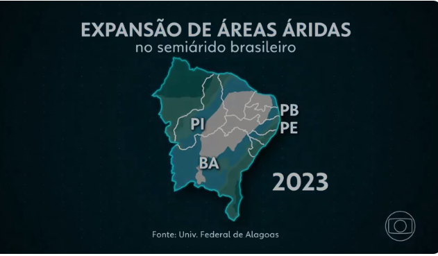 A Universidade Federal de Alagoas (UFAL) identificou a expansão de áreas áridas no semiárido brasileiro. A desertificação atinge uma área de 282 mil km², no norte da Bahia, sul do Piauí, sul do estado pernambucano e os cariris paraibanos.