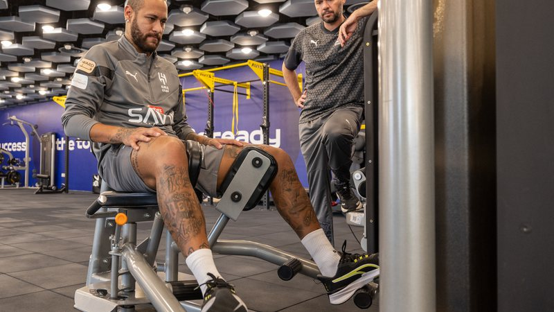 Após ser recebido com flores no aeroporto na última segunda-feira (12), Neymar deu início ao seu retorno aos treinamentos no CT do Al-Hilal, nesta quarta-feira (14), e retomou o tratamento da lesão em seu joelho esquerdo, após quatro meses longe do país saudita.