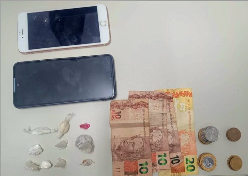 De acordo com a corporação, durante rondas na Travessa da Rua B, os policiais avistaram um homem em uma motocicleta. Ao ser abordado, foram encontrados em sua posse três pinos e cinco invólucros de substância análoga à cocaína, uma pedra semelhante a crack, além de R$ 60,90 em espécie, um celular iPhone e um celular Redmi.