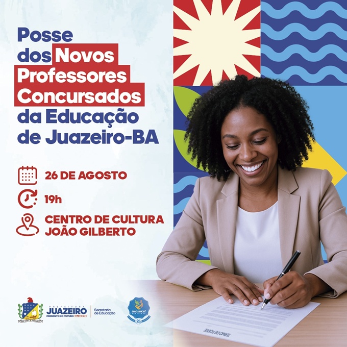 A Prefeitura de Juazeiro, por meio da Secretaria de Educação/Seduc, realizará, nesta terça-feira (26), a solenidade de posse dos novos professores concursados que irão atuar na rede municipal de ensino.