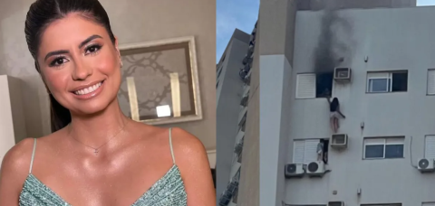 Juliane subiu em uma caixa de ar-condicionado que estava por fora. É possível ver ela estendendo a mão para uma pessoa que está dentro do apartamento .